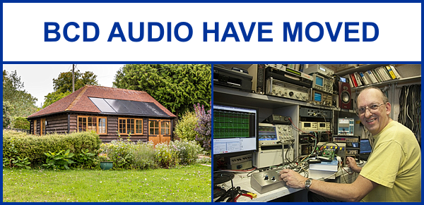 BCD Audio are pleased to announce that they have moved to Hampshire. Our new contact address and telephone number is: BCD Audio, Angerton, Church Road, Farringdon, Alton, Hants, GU34 3EG, UK Telephone +44 (0) 7551 305788