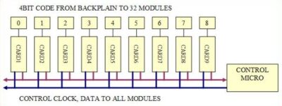 The RMOS ( Ringmain and outside source ) system originated in 1997, where there was a requirement for Analogue Stereo Program switchers of sizes to 64×32 coupled with a reverse Cue switcher of about 16×8 for Radio Stations. A compact Balanced analogue switcher Eurocard of size 16×8 was designed, and many could be controlled with two common wires from a processor card. This became known as B2C ( Board to computer! )